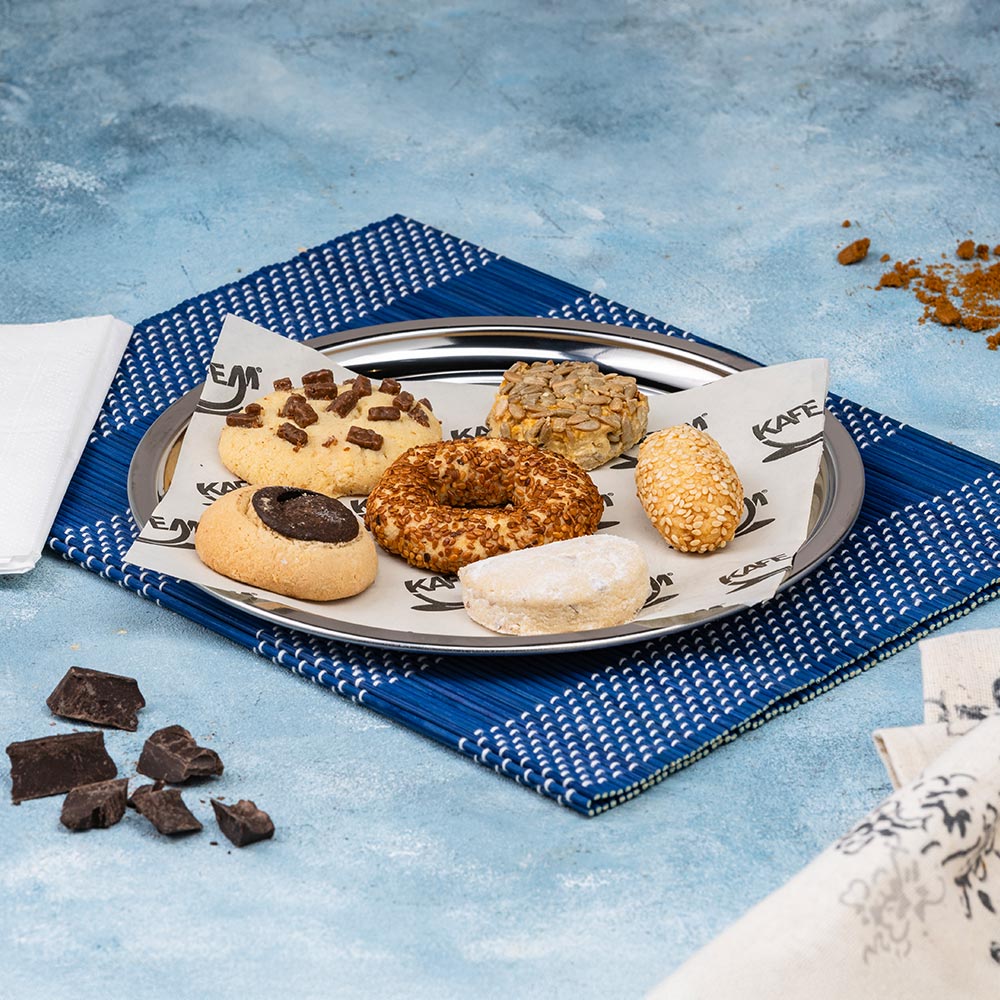 Kaşar peyniri, Beyaz Peynir, Ceviz, İncir, Yumurta, Bal, Kaymak, Yeşil Zeytin, Siyah Zeytin, Çeri Domates, Salatalık, Maydanoz, Baget Ekmek.