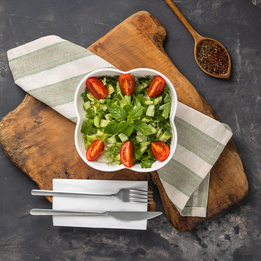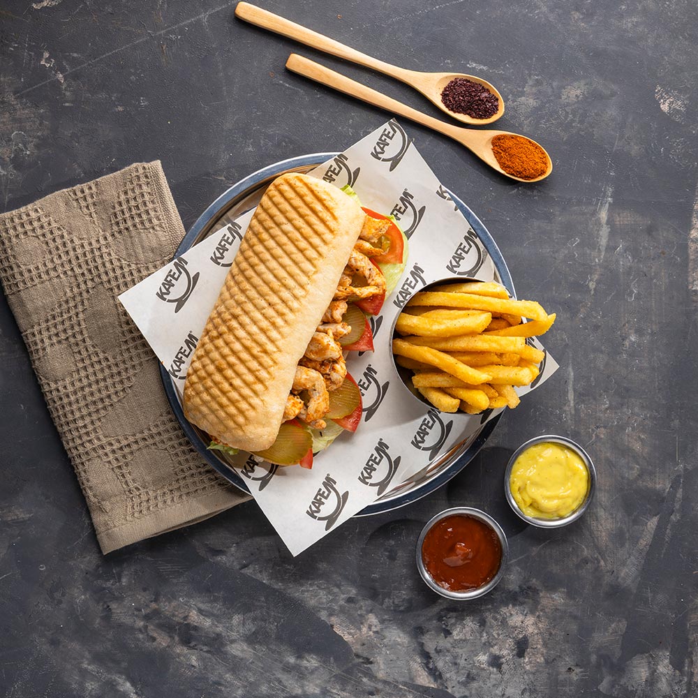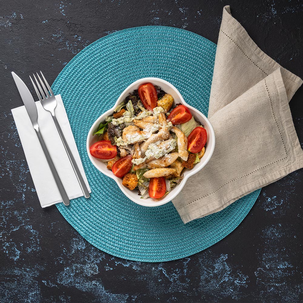 310.00 ₺Tavuk parçaları, Sezar sos, Parmesan peyniri, Çeri domates, Salatalık, Yeşillik, Kruton.